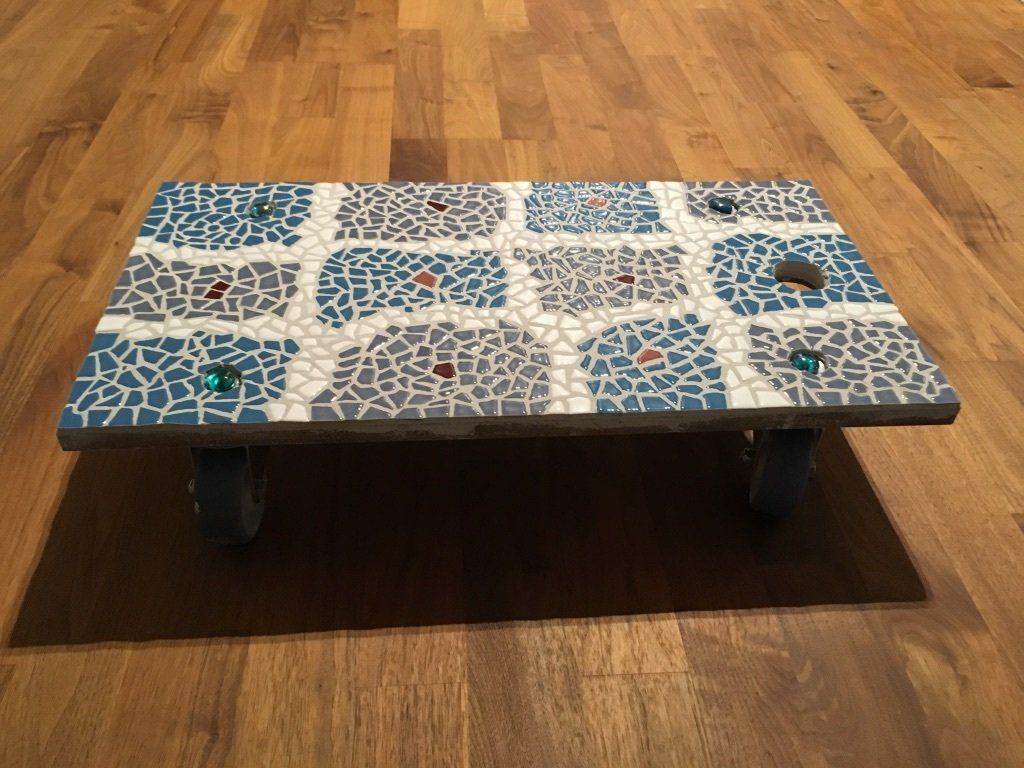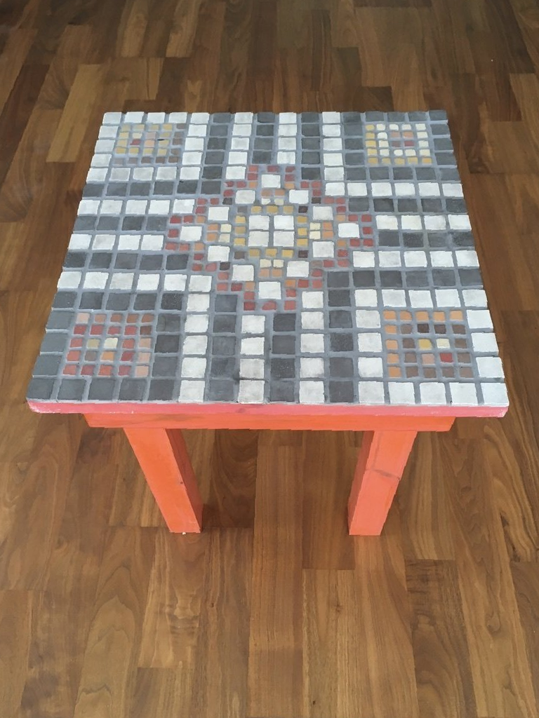 ButtonBei mir zementierte sich der Wunsch, Mosaike entstehen zu lassen, als ich in eine leere Wohnung zog. Leer, weil nicht mal eine Küche drin war. Doch vor meinem geistigen Auge sah ich sofort eine bunte Bordüre als kunstvolles Mosaik an der Küchenwand hinter Herd und Spüle auftauchen. Nun ja, ich hatte sowas schon mal in einer Architekturzeitschrift gesehen. Und hier rief mein Gehirn das Bild wieder ab, um es in der neuen Küche realisiert zu sehen. Nun, es wurde nie was aus der Mosaikbordüre in einer Küche, aber es war Anreiz genug, in die Entstehung von Mosaiken einzutauchen und sich auszuprobieren. Ich hatte da noch so einen alte Hocker in der Wohnung rumstehen…..