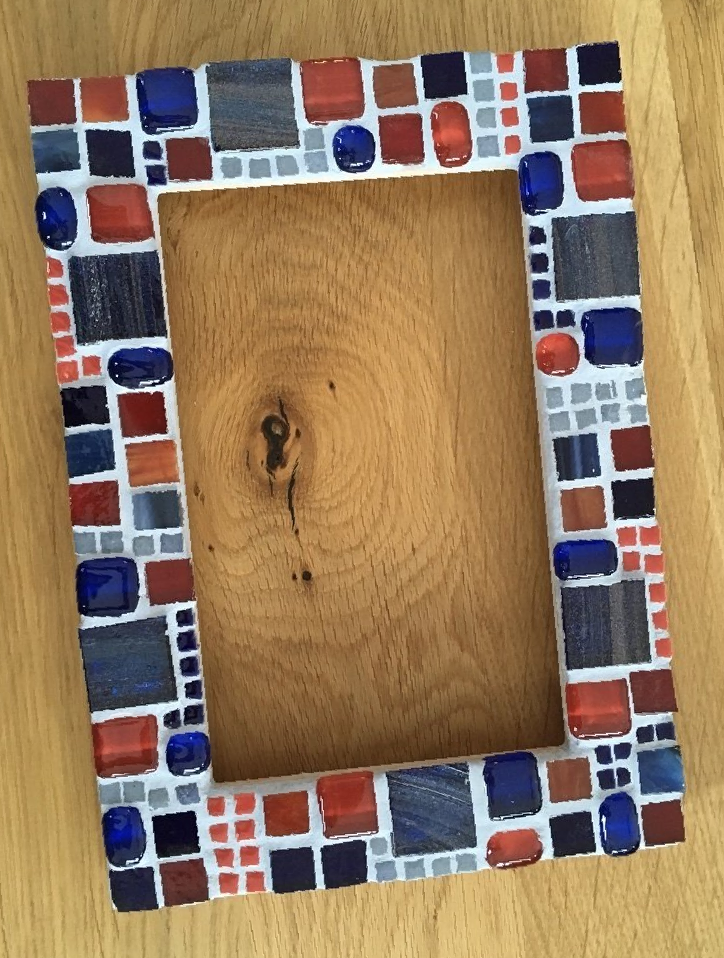 Aus einem billigen Kiefernholzrahmen wurde ein rot-blauer Bilderrahmen..... um Sprüche, Kinderbilder, Porträts und vieles mehr einzurahmen und aufzuhängen.